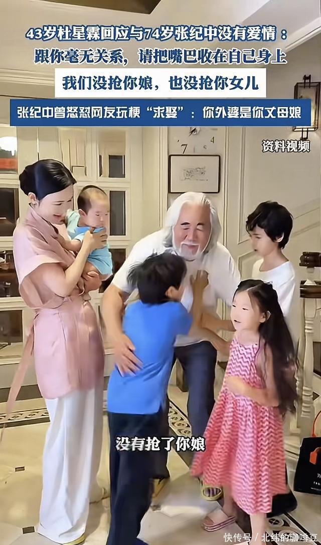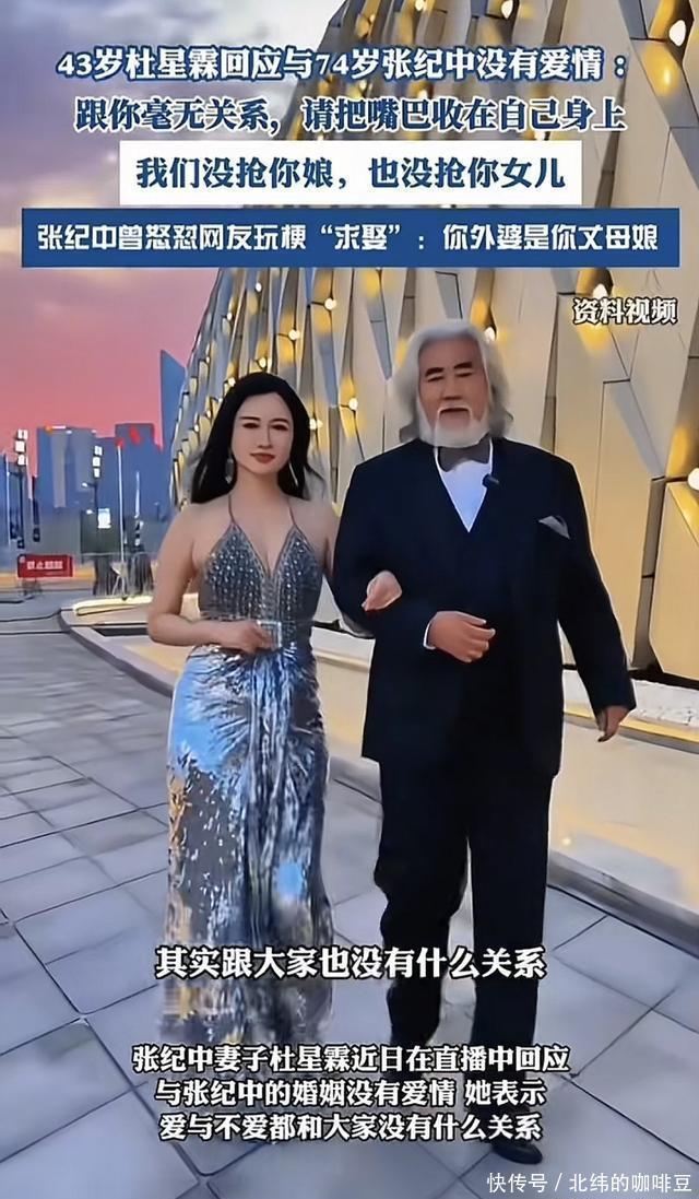婚姻本质引发思考 张纪中跟杜星霖的婚姻,一直都特别受关注,不光是因为两人差岁,还掺着张纪中跟前妻樊馨蔓之间的婚姻纠纷。就算争议一直没断,杜星霖也已经给张纪中生了四个孩子了。